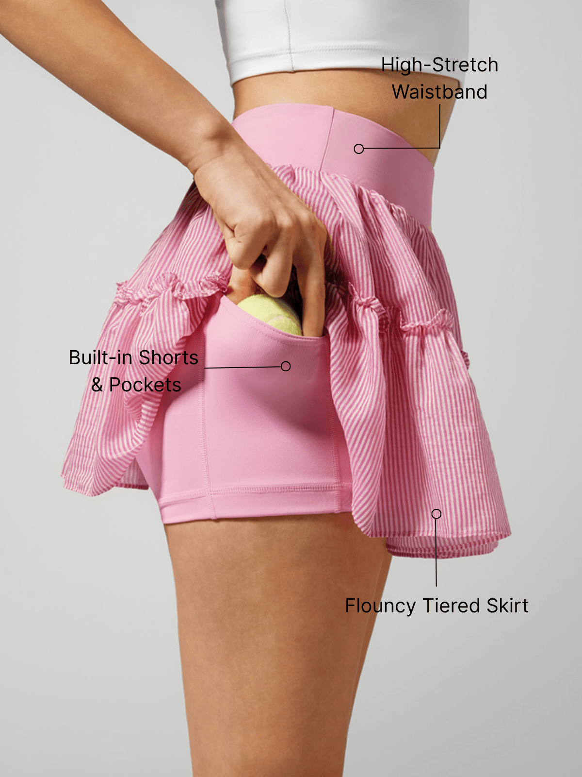 High-stretch Waistband Bow Tennis Skirt Hot Pink