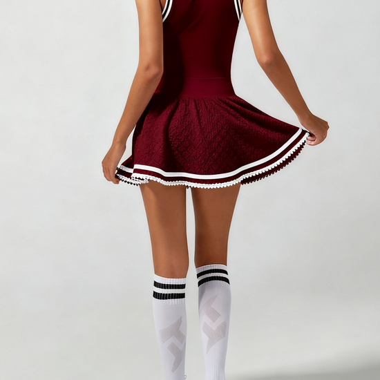 High Elasticity Hollow Out Tennis Skirt Wine Red