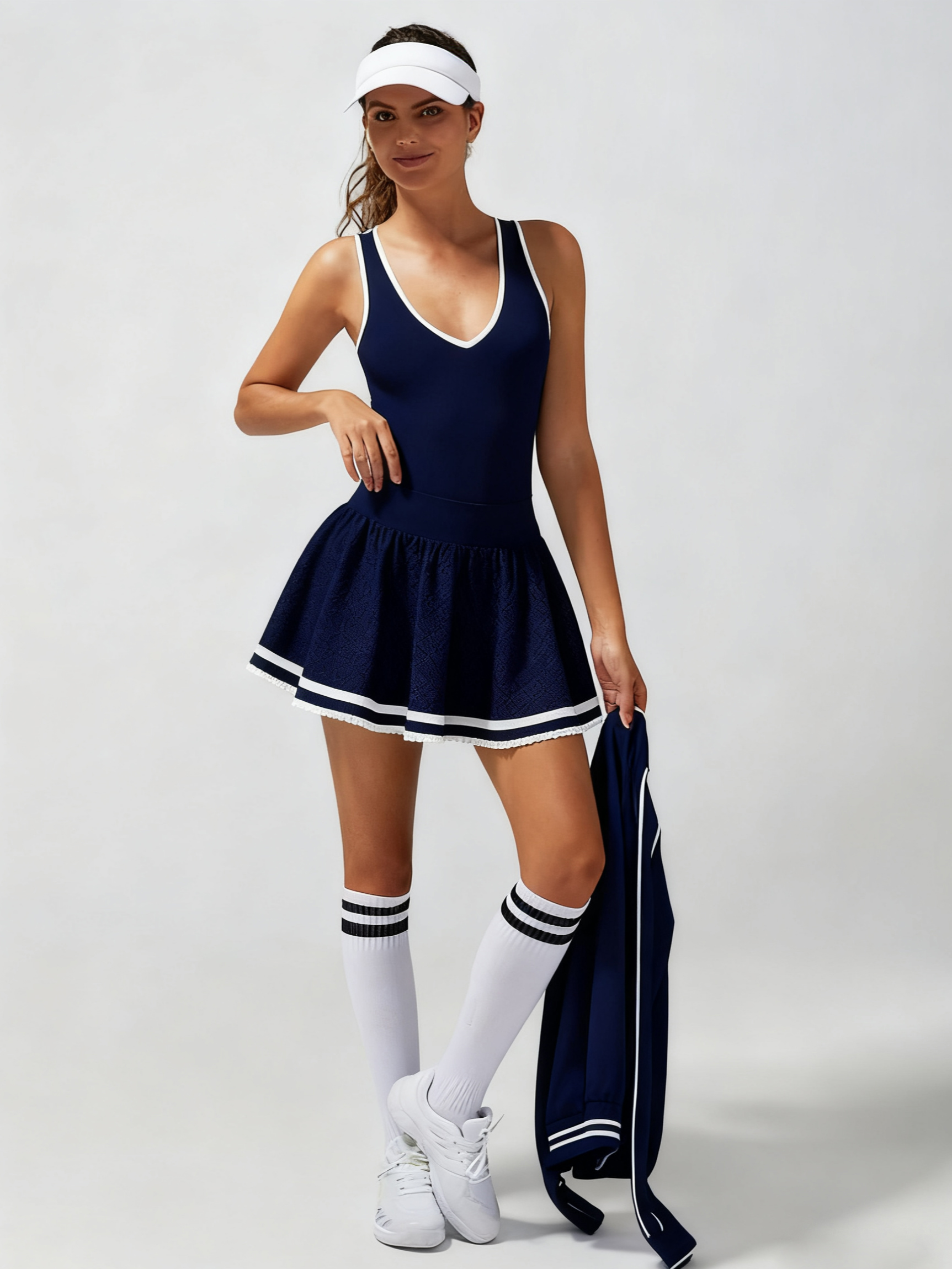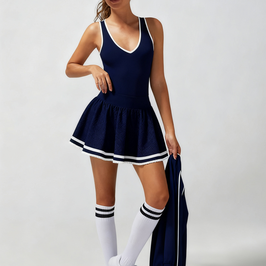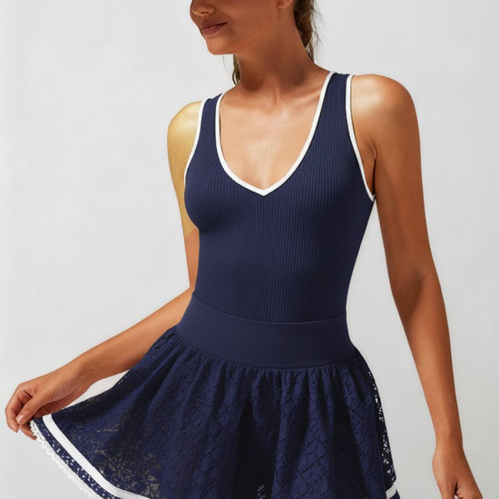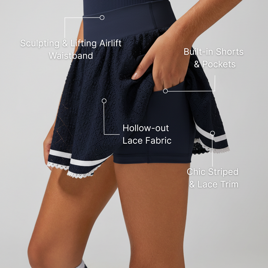 High Elasticity Hollow Out Tennis Skirt Navy Blue
