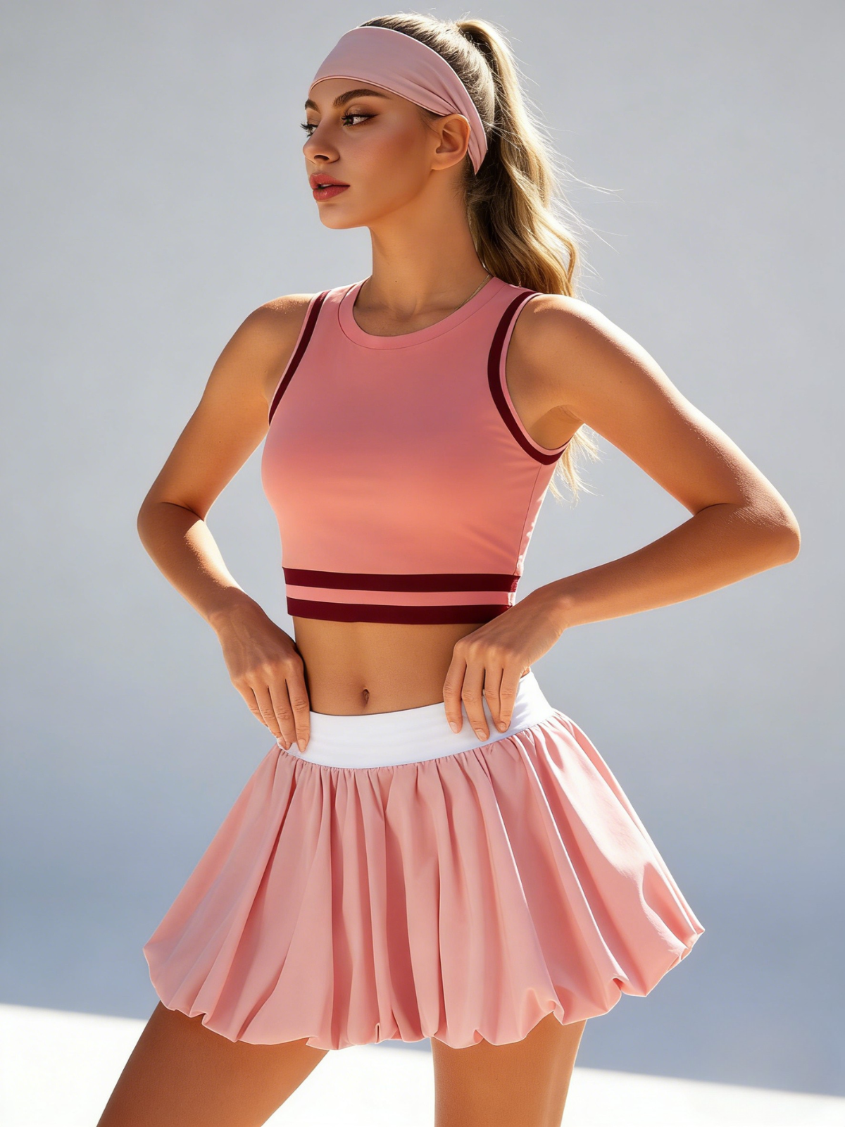 High Elasticity Bubble Tennis Skirt Pink