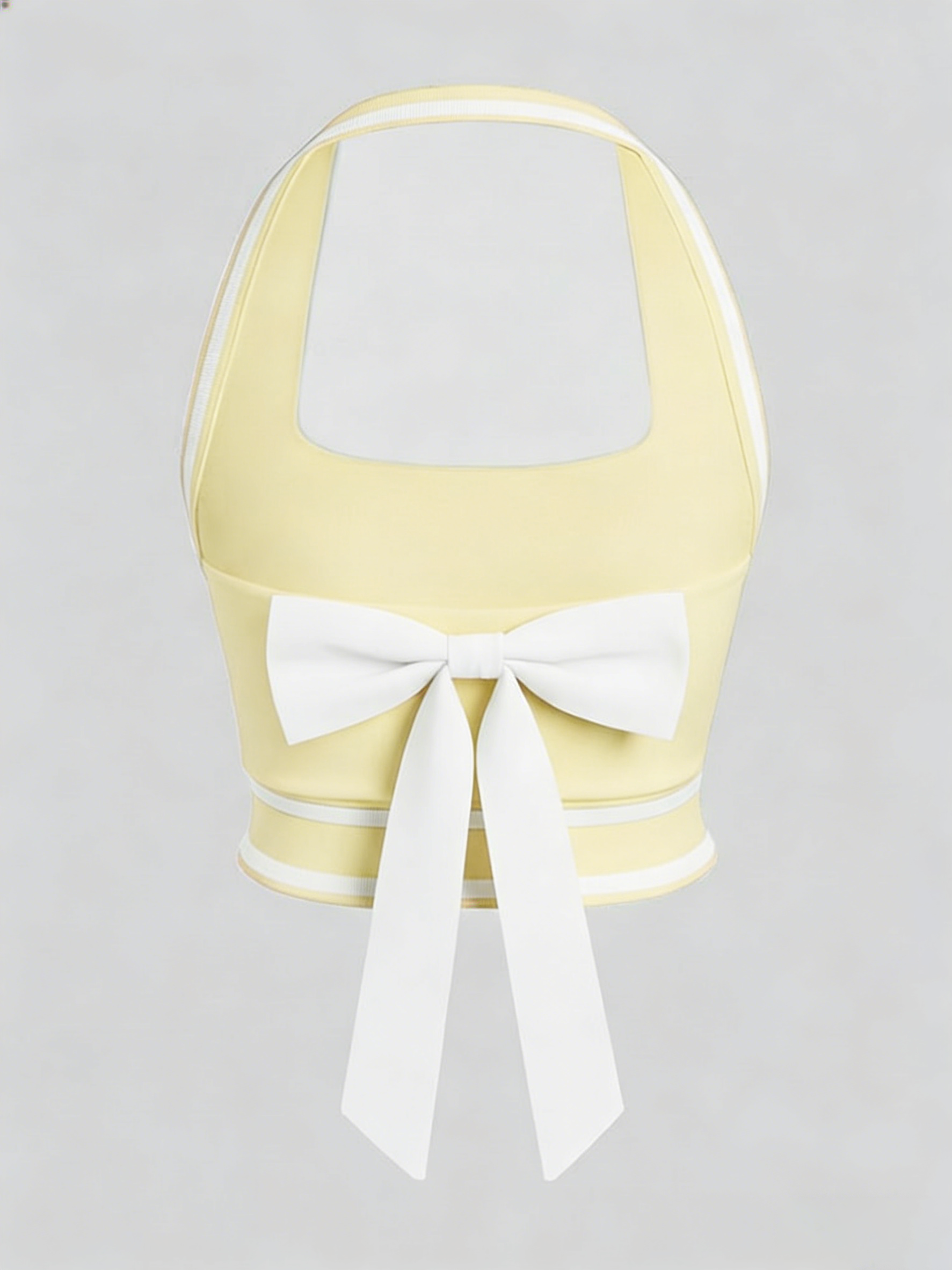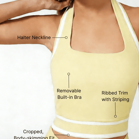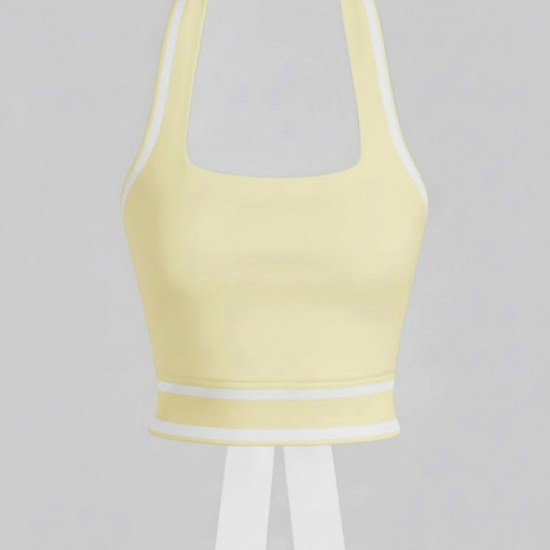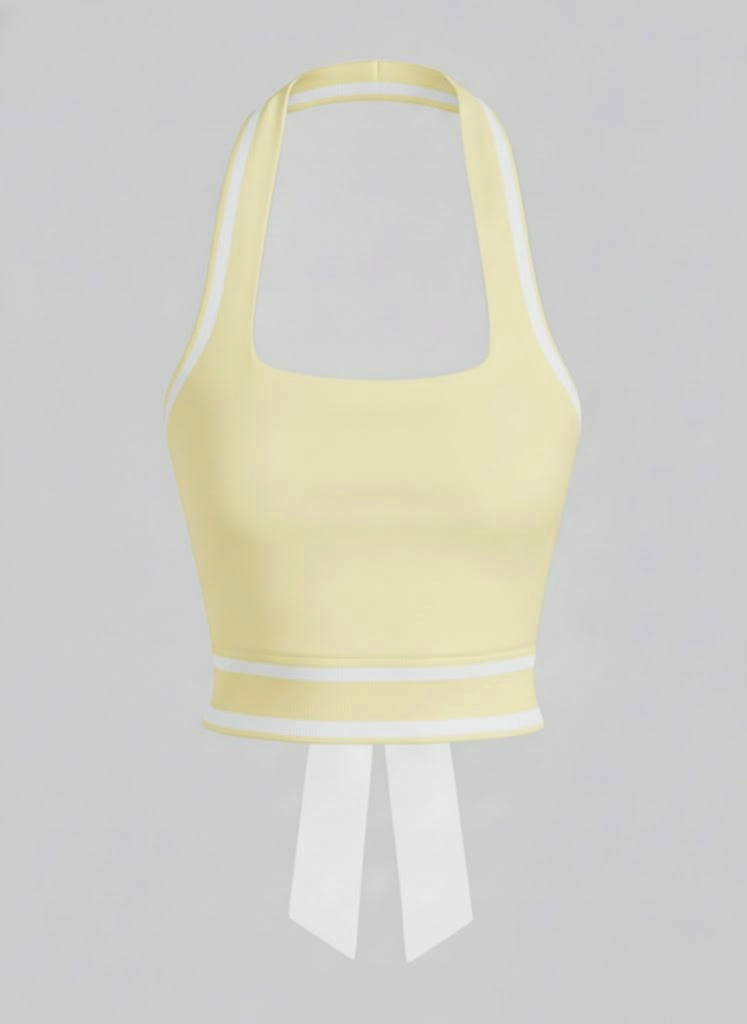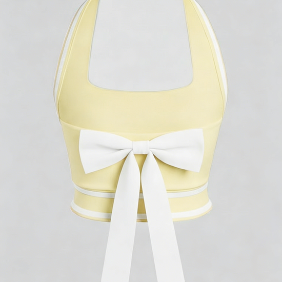 Cute Bow Halter Neckline Crop Tank Top with Built-in Bra Yellow