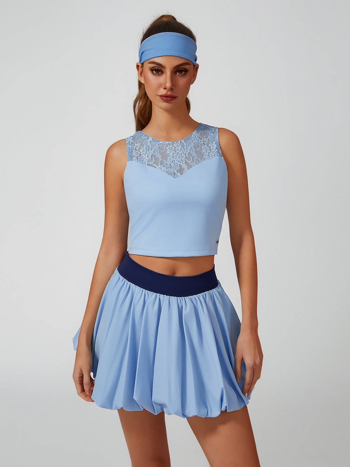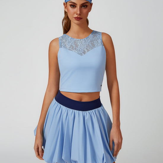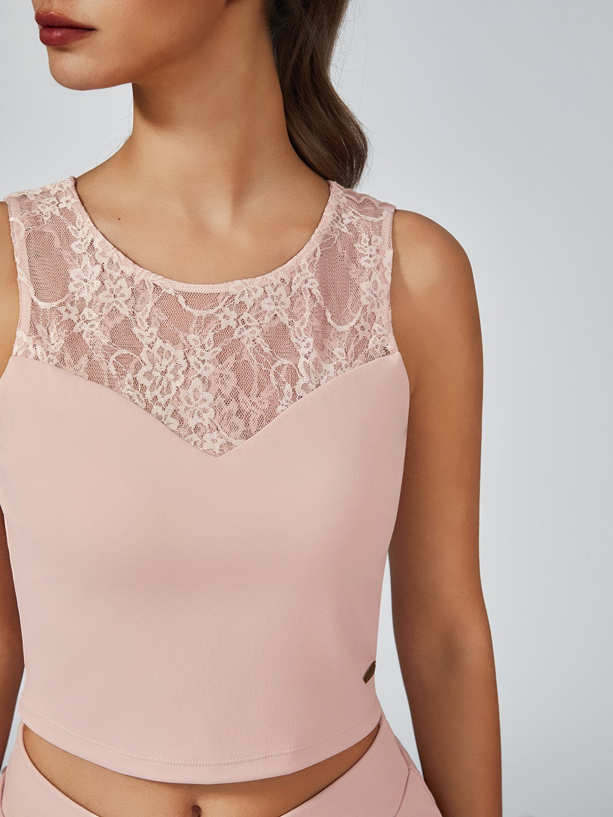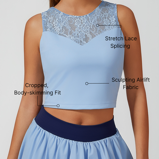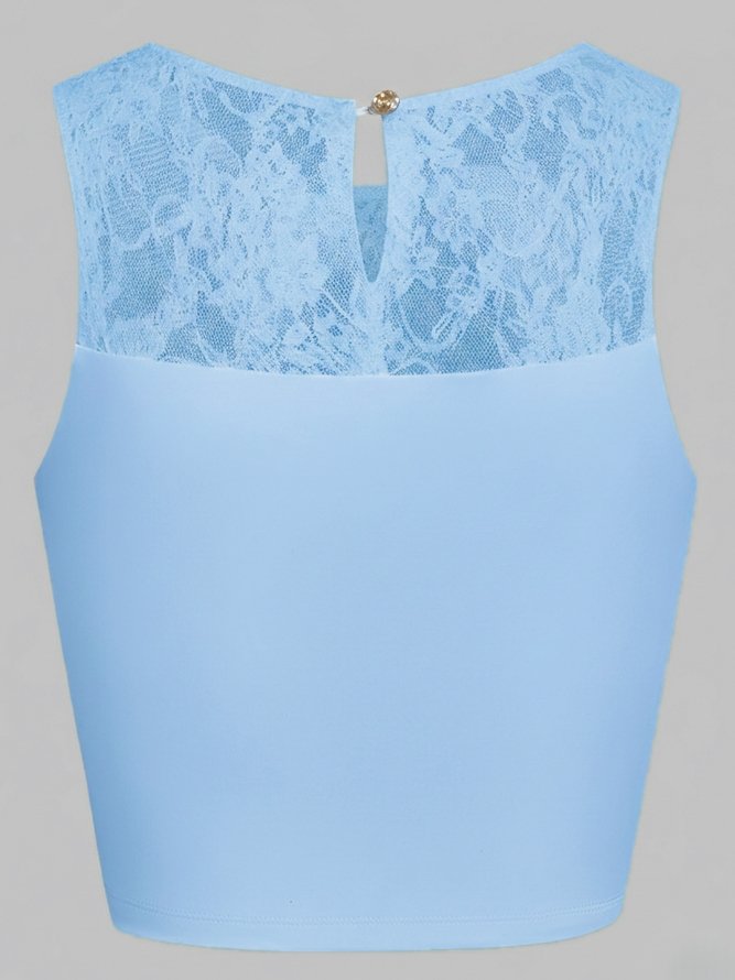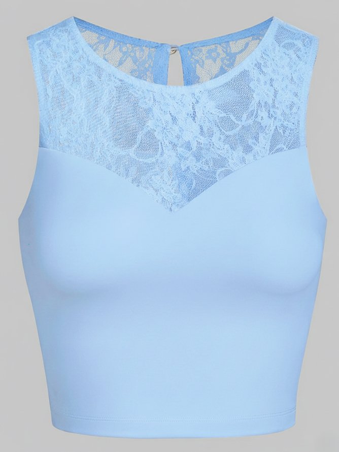 Lace Splicing Crew Neck Crop Tank Top