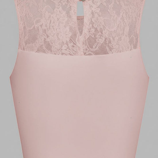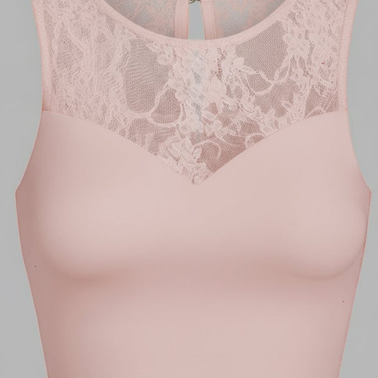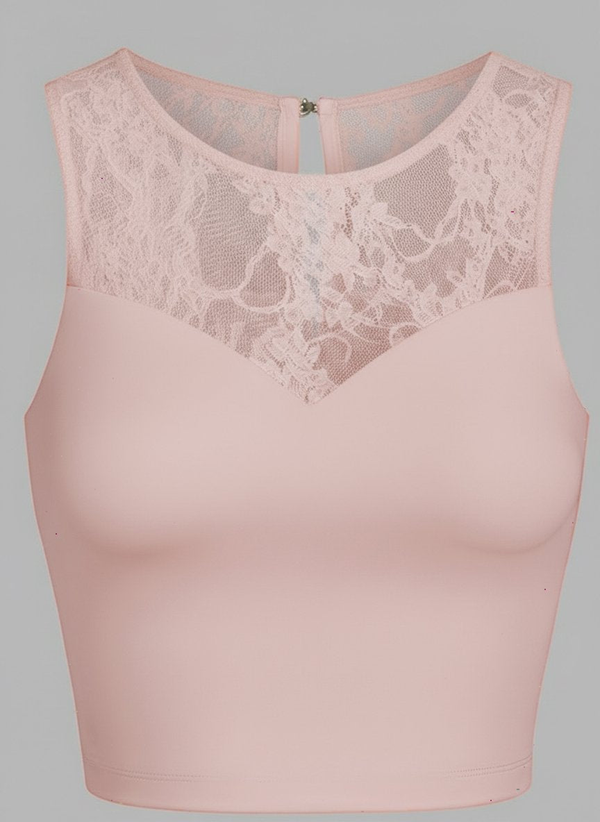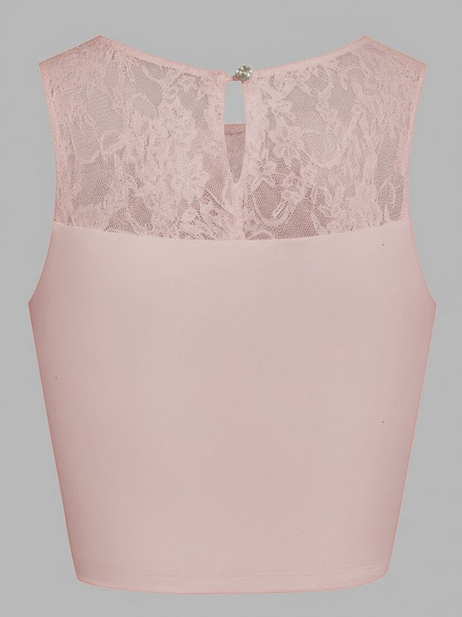 Lace Splicing Crew Neck Crop Tank Top Pink