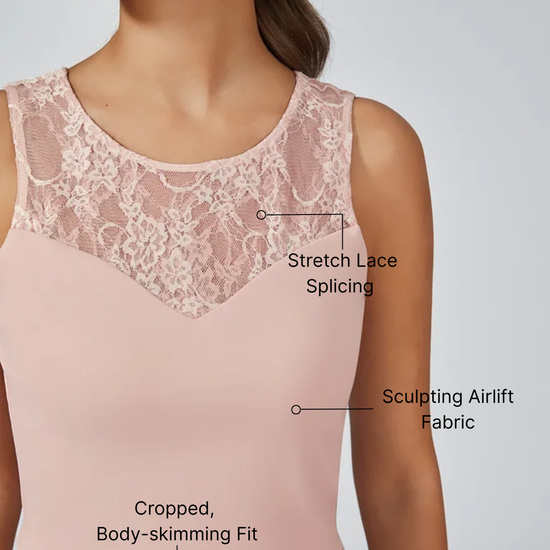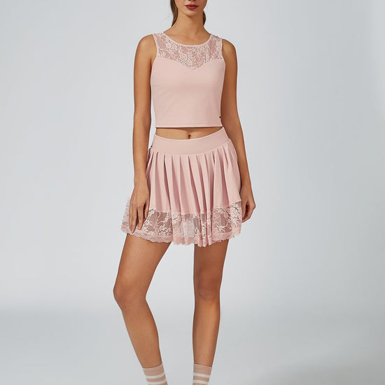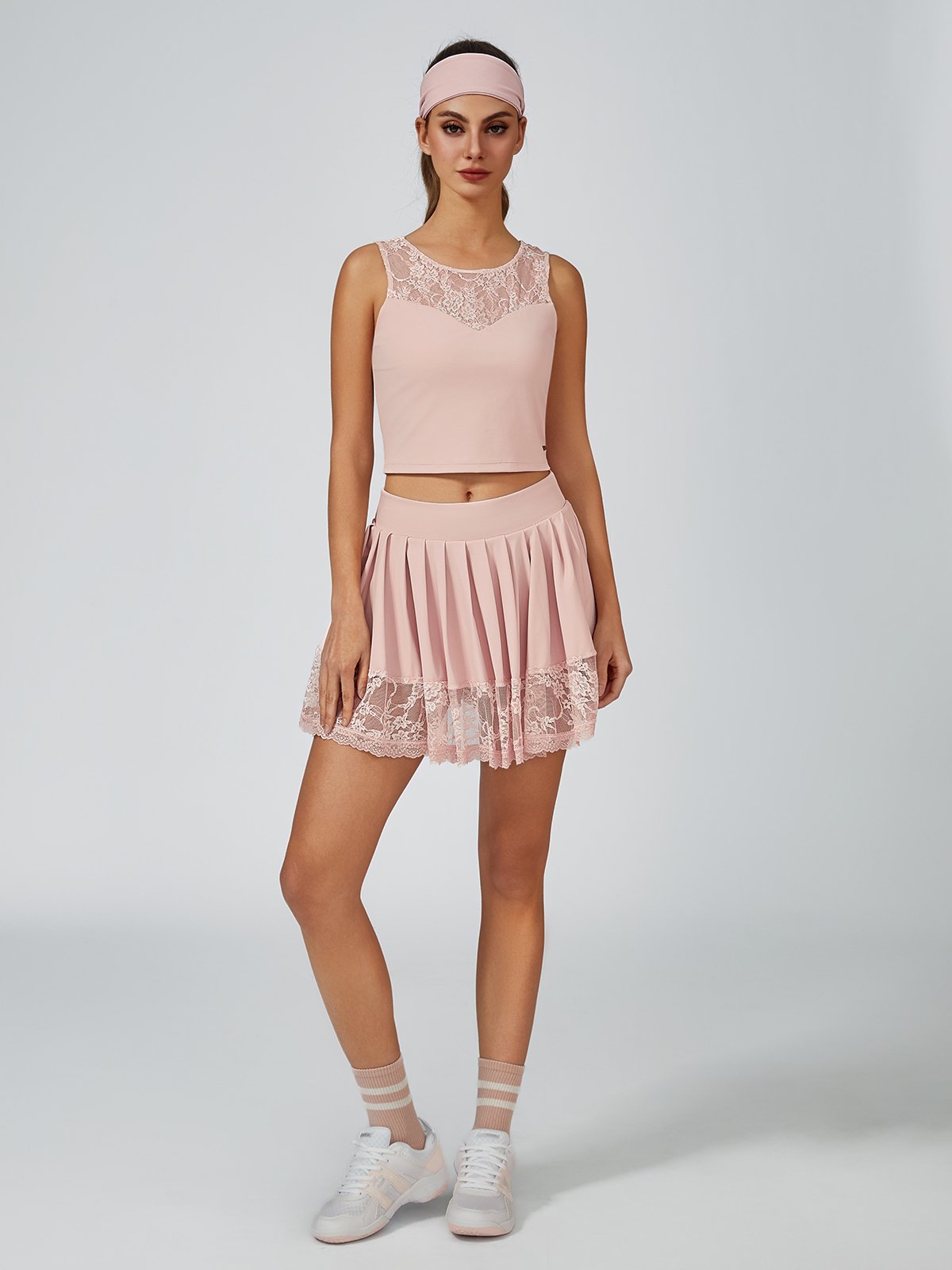 Lace Splicing Crew Neck Pickleball Crop Tank Top Pink
