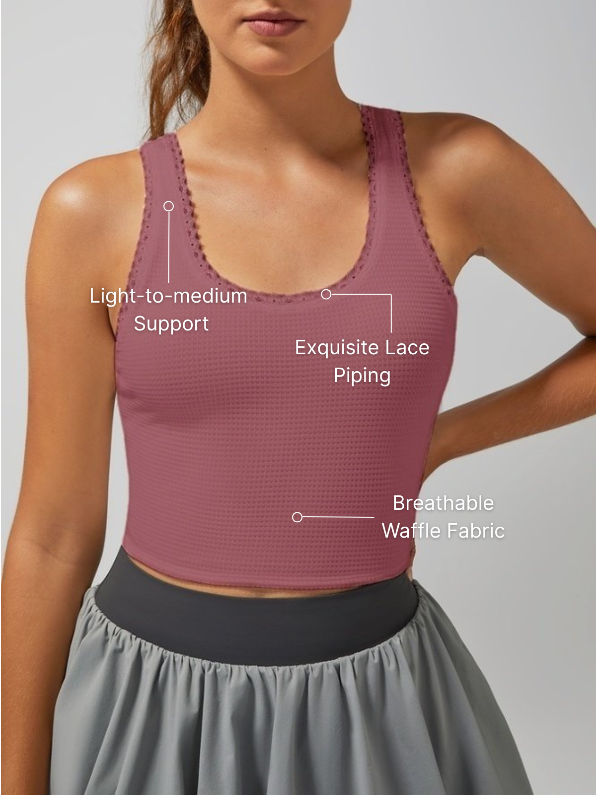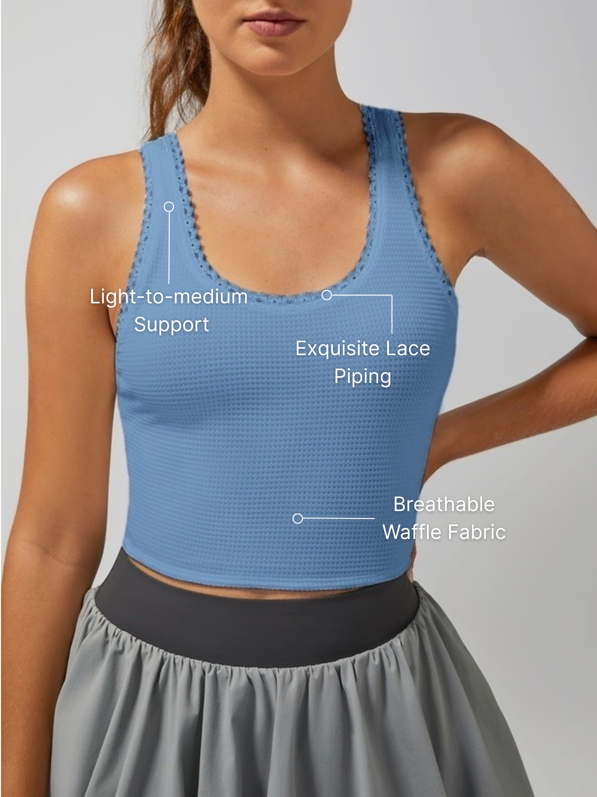 Light-to-medium Support Straps Lace Trim Crop Tank Top