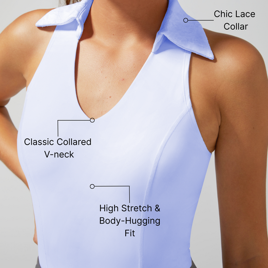 High Elasticity Lace Polo Crop Tank Top Blue
