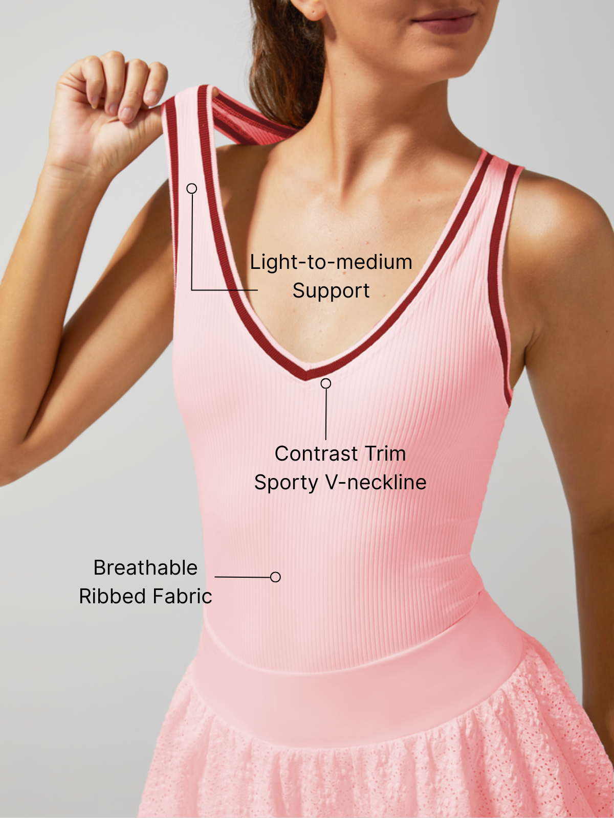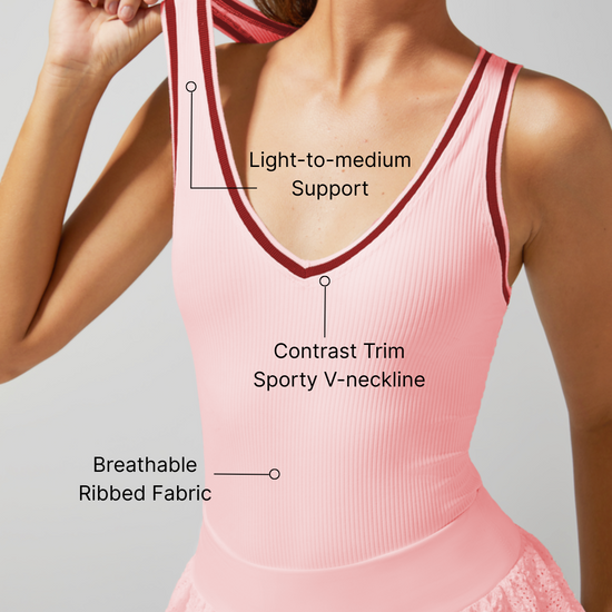Light-to-medium Support Straps Breathable Ribbed Tank Top Berry Pink